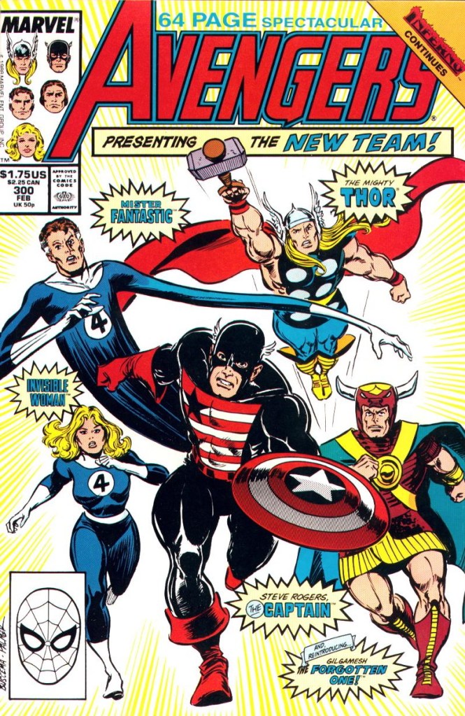 Dopo un periodo relativamente positivo in cui si segnalano gli interventi ai testi di Steve Englehart ( The Avengers dal numero 105 al numero 152 ) e George Perez ai disegni (The Avengers dal numero 141 al 171) il momento difficile che imperversa nel mondo dei comics raggiunge anche la Marvel e la serie crolla in una profonda crisi. L’allora editor-in-chief Jim Shooter, validissimo come guida della casa editrice ( sotto di lui si leggono autentici capolavori quali le saghe degli X-Men di Fenice Nera, dei Giorni di un futuro passato e l’ampliamento dell’universo Mutante con Alpha Flight, New Mutants e la miniserie dedicata a Wolverine tutto gestito da Christopher Claremont, Daredevil ed Elektra: Assassin di Frank Miller, Fantastic Four di John Byrne, Thor di Walter Simonson, senza contare che a lui si deve l’introduzione alla Marvel dei Graphic Novels, volumi di grandi dimensioni che si rifanno al formato francese ) ma decisamente infantile come scrittore ( eccezion fatta per la manciata di episodi da lui scritti assieme a David Michelinie relativi allo scontro tra Korvac, i Vendicatori e i Guardiani della Galassia, Avengers numeri 167, 168 e dal numero 170 al numero 177, dal gennaio al novembre 1978 ), fa scempio del gruppo con una serie di avventure scialbe, poco utili e sempre alla ricerca infruttuosa del colpo di scena ( tra tutte spicca Il tradimento di Hank Pym ). Lo sfacelo dura fino a tutto il 1982 quando la serie viene affidata alle cure di Roger Stern che, anche se presenta storie non eccezionali, rimette un po’ a posto le cose. È un’operazione che dura cinque anni ( The Avengers dal numero 224 al numero 287 ) e alla fine di questa gestione il campo è pronto per la gestione di Bob Harras e Steve Epting.