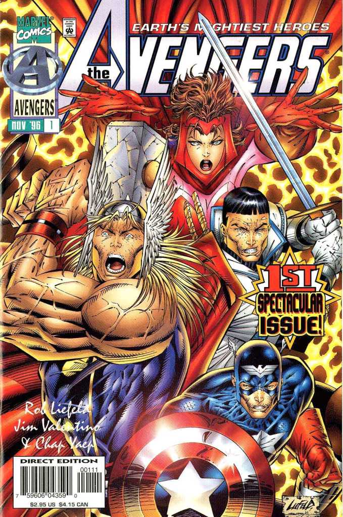 Il progetto si chiama Heroes Reborn e, purtroppo, i Vendicatori vengono affidati alle non eccezionali cure di Rob Liefeld e ai suoi due misteriosi collaboratori Ian Churchill e Chap Yaep. La gestione, non certo soddisfacente, dura sette numeri, nei quali Liefeld mostra immediatamente i suoi limiti, le vendite crollano ed è la rottura: fortunatamente l’ artista se ne va e lascia l’ingrato compito di recuperare il terreno perduto a Walter Simonson e Michael Ryan che si devono inoltre confrontare con delizie quali Heroes Reborn:Iron Man di Jim Lee, Scott Lobdell e Whilce Portacio e Heroes Reborn: Fantastic Four di Brandon Choi e Jim Lee.