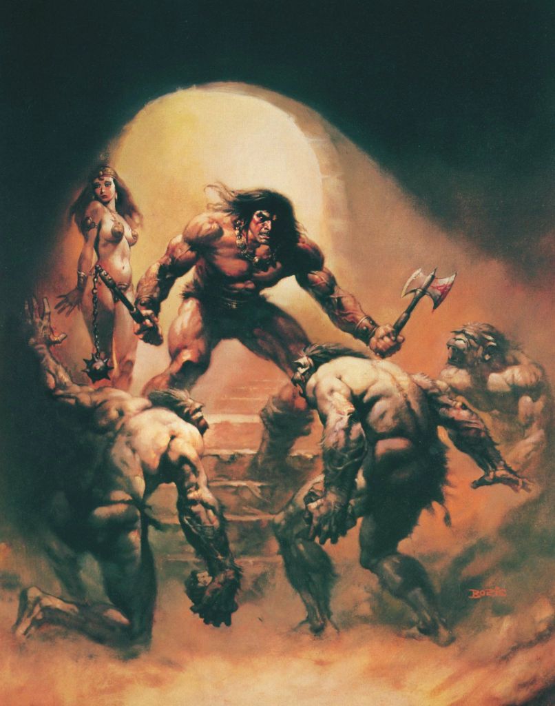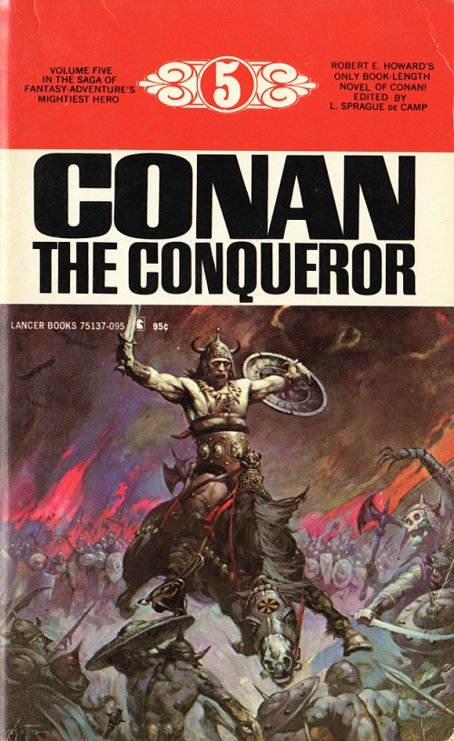 Negli anni sessanta del XX° secolo, sulla scia del successo della letteratura Tolkeniana, la Lancer Books acquisisce i diritti di ristampa della saga Howardiana. Per l’occasione l’incarico di realizzare le copertine viene affidato a Frank Frazetta. L’artista dipinge una serie di illustrazioni eccezionali per dinamismo e potenza riuscendo a infondere l’essenza della narrazione di Howard. I volumi in cui sono raccolte le avventure di Conan riscuotono un successo straordinario e la sua popolarità continua a crescere.