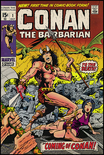 La cifra richiesta è ritenuta troppo esosa e Thomas ripiega su un personaggio minore della stessa casa editrice: Conan. Accettato l’incarico nella speranza di gestirlo solo per breve tempo lancia la collana Conan The Barbarian ( che durerà invece 275 numeri dall’ottobre 1970 al dicembre 1993), che gestirà per più di dieci anni portando il personaggio a un’insperata popolarità. La sequenza iniziale di ventiquattro episodi viene disegnata da Barry Smith (solo in seguito diventerà Barry Windsor-Smith ) dal tratto ancora acerbo ma originale con cui è già in grado di disegnare storie egregie tra cui spicca La torre dell’elefante ( Conan the Barbarian 4 dell’aprile 1971 – in Italia Albi dei Super-eroi 16 Editoriale Corno o Conan Saga 1 ( Comic Art ), illustrato con stile liberty e una composizione delle immagini che a tratti ricorda Jim Steranko.