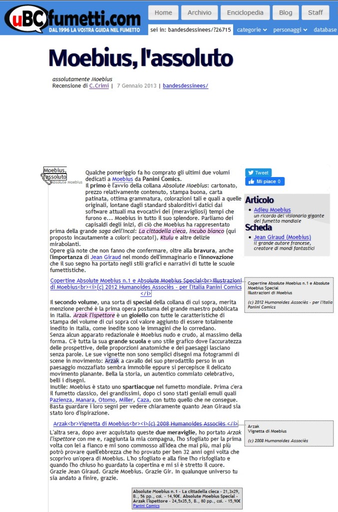 In questi volumi è chiarissimo di come Moebius sia stato uno spartiacque nel fumetto mondiale. Prima c’era il fumetto classico, dei grandissimi, dopo Moebius ci sono stati geniali emuli quali Pazienza, Manara, Ōtomo, Miller, Caza, con tutto quello che ne consegue. Basta guardare i loro segni per vedere chiaramente quanto Jean Giraud sia stato loro d’ispirazione.