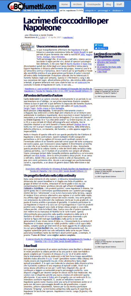È in ogni caso lodevole la soluzione della chiusura prima che il prodotto scadesse in una sequenza di episodi scialbi, tirati via e senza alcuna attrattiva se non per i soliti fans sfegatati che, pur di continuare a leggere avventure del proprio personaggio preferito, sono disposti a leggere per decenni sempre le stesse storie mal rielaborate. Che gli amanti del fumetto d’autore non si disperino perché una nuova creatura di Ambrosini spunta all’orizzonte. Il suo nome è Pollok ( poi divenuto Jan Dix. NDA ) ed è il progetto con cui Ambrosini & Co. intendono sostituire Napoleone.