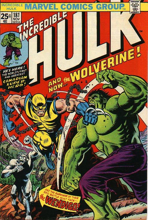 Wolverine contro Hulk su Incredible Hulk n. 181 ( del novembre 1974 ) pubblicato in Italia su Uomo Ragno ( prima serie ) n. 193 ( Editoriale Corno ) e su Collana Bookstore n. 4: Wolverine Intro: Wolverine contro l’incredibile Hulk ( Panini Comics )
