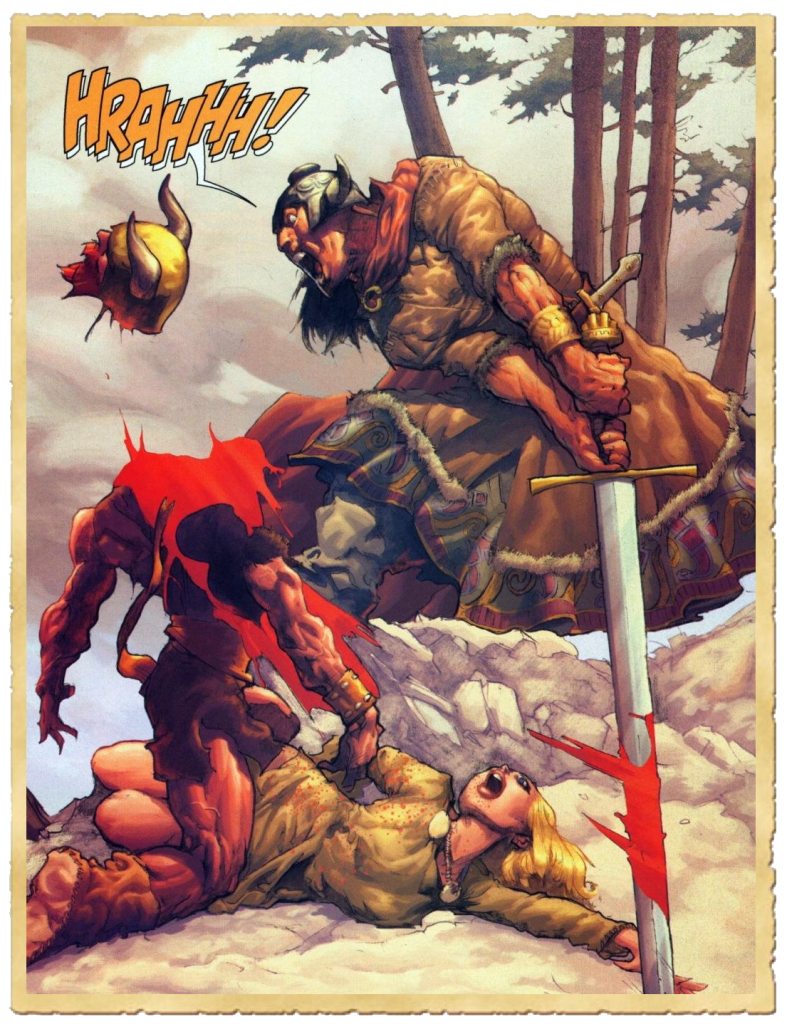 Dopo sei anni di assenza tornano finalmente anche in Italia i fumetti inediti di Conan il barbaro. Sono le avventure della giovinezza del barbaro cimmero: l’incontro con i Vanir, con la figlia del Gigante dei ghiacci e la sua schiavitù a Hyperborea. È la storia di un pesonaggio che nascerà barbaro e che col tempo sarà anche ladro, mercenario, predone, pirata, nomade e guerriero, fino a diventare prima generale e poi re. Insomma diventerà un mito.