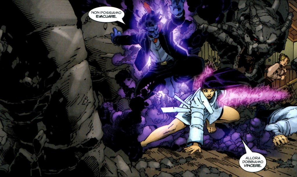 È impressionante la quantità di input con cui Claremont e Bachalo infarciscono questa storia. Il più evidente è il balzo che Nightcrawler compie trasportando due X-Men per cinquanta miglia, rivelando una capacità di Kurt ben maggiore della solita. Ma ben più importante è il momento finale di questa tragedia, quando Rachel condivide con un Ciclope sconvolto dalla rabbia un momento di dolore estremo fatto della consapevolezza della perdita ma anche delle durissime parole che Elaine, madre di Jean e nonna di Rachel, pronuncia alla ragazza gettando la giusta luce, cupa e disperata, sulla grande verità dei Grey: Charles Xavier, Fenice e il mondo mutante sono stati solo una sequenza di orrende tragedie per questa sfortunata famiglia. Piuttosto era meglio se Jean non fosse mai nata. Rachel sa che queste parole non sono solo frutto di rabbia ma una terribile consapevolezza.