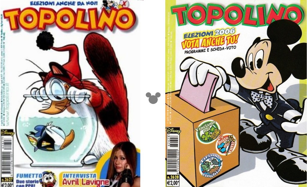 Nel numero 2628, oltre all’episodio in cui i vari candidati andranno in tv mediati dalle versioni Disney di Mentana, Vespa e Ferrara, sarà allegata la scheda elettorale per poter votare. La campagna, aperta da Topolino in gran lustro a pagine unificate, apre uno scenario inedito: i giovani lettori sono invitati non solo a prendere coscienza dell’importanza delle elezioni ma anche a schierarsi con una lista, scartando le altre due. La scelta non è affatto semplice perchè le liste contengono personaggi per indole e carattere molto diversi tra loro, anche se si scorgono alcune affinità di massima che qualche quotidiano ha già etichettato come di destra, di sinistra o di centro.