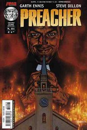 Esce in edicola, quatto quatto, un gioiellino del comicdom USA: Preacher: Texas o morte! del grande Garth Ennis, disegnato da Steve Dillon. A quasi dieci anni di distanza la Magic Press ripropone questo volume ormai famoso, un autentico caposaldo della produzione Vertigo, per il grande pubblico dell’edicola. Scelta decisamente coraggiosa, in parte per il formato ( tascabile e in bianco e nero contro quello classico del comic book ) ma soprattutto per i temi trattati. Infatti è la spietata storia di una guerra celeste le cui conseguenze si fanno sentire sul nostro piano di esistenza. Genesis, colui che è nato dal rapporto proibito tra un angelo e una demone e che fu rinchiuso perchè troppo potente, fugge e si impossessa di Jesse Custer, un prete suo malgrado, dotandolo di un potere enorme: la voce di Dio. Da quel momento la battaglia si sposta sulla Terra e tra Angeli come mai se ne erano visti, killers sovrannaturali, famiglie deviate, vampiri, corruzione, violenza e colpi di scena a raffica, conditi da dialoghi al vetriolo e situazioni esilaranti Jesse e i suoi due incredibili compagni di viaggio partono alla ricerca di Dio, nascostosi in una fattoria del Texas. Assolutamente da non perdere. Il prezzo è ridicolo: solo ( e finalmente si può scrivere senza ferire l’intelligenza di nessuno ) 4,90 euro. Speriamo escano anche tutti gli altri undici volumi. Un consiglio? Compratelo. Un altro consiglio? Non fermatevi alla superficie del racconto. E ricordate… Texas o morte!